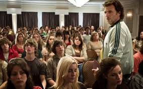 The money moment in the French-Canadian dramatic comedy “Starbuck” is set in a hotel conferance room. Over 140 young people, co-plaintiffs in a lawsuit aimed at revealing to them who the sperm donor was who is the father of them all, have gathered for a pep-talk and lawsuit update.