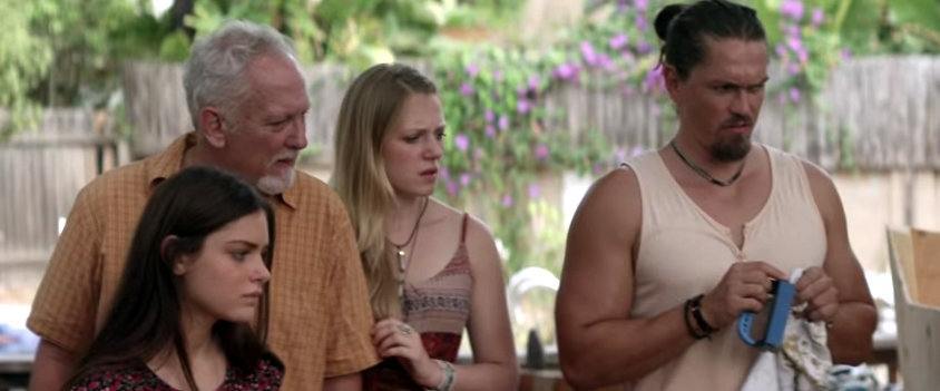 Barry (Bret Harrison) is the gay sibling who became a psychologist. Don (Michael Weston) is “the responsible one,” father of an insufferable Young Republican teenager (Odeya Rush). Don may be the one angriest at their once-absentee/now living with a hippy “nurse” (trippy Emma Bell) father (Conor O’Farrell).