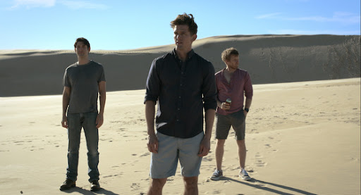 I mean, I’m a straight male. But rarely have I been more disappointed that a movie didn’t turn into some homoerotic “realization” drama than “Up on the Glass.” That’s what the gathering of tipsy, on-his-second-marriage Moze (Steve Holm) and itinerant “carpenter with an Ivy League degree” Jack (Chase Fein) at the Lake Michigan beachfront home of investments manager Andy (Hunter Cross) sets up as.