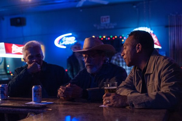 That tone is what Olmos tries to sustain throughout the film. But the director/co-star’s attempts at wizened Hispanic whimsy clashes with Strathairn’s widowed dirt-farmer reality. And then this violent, menacing “heavy” from the company (Pablo Schreiber, cartoonishly evil) shows up, and the formerly-famous crusading lawyer (Martin Sheen) who takes on the case.