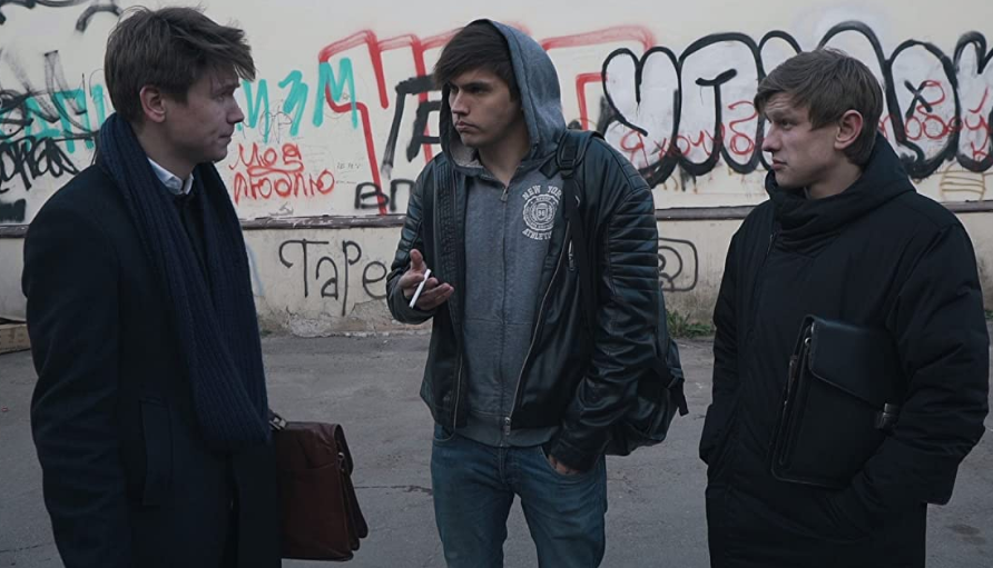 Kozlov sets this up as a mockumentary, and pretty much abandons that after we’re introduced to Gosha (Ivan Shary), Vlad (Andrei Yasinsky) and Gleb (Evgeniy Zarubin). They’re brokers, of a sort — young salesman at a small, cutthroat firm run by brutish founder Potapov (Dmitriy Grishin) like he’s seen “Boiler Room” a few too many times.