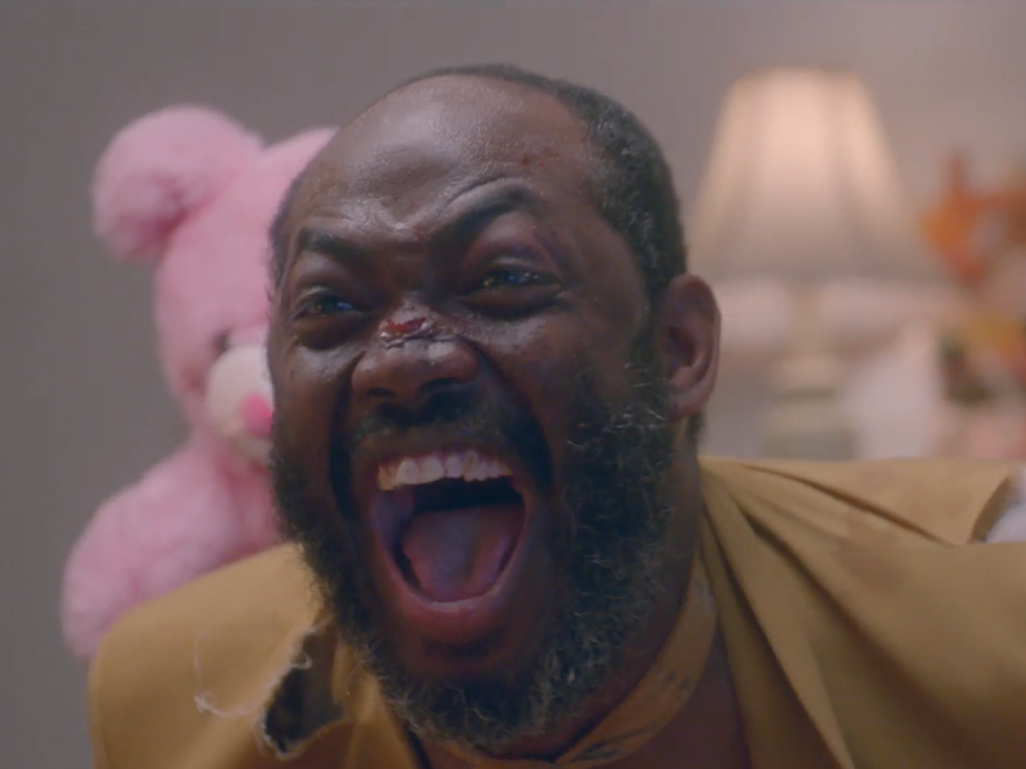 The gang includes “Black Forrest” (Sam Pleasant), killer shrew Bo (Kara Mellyn) and most horrifically, “Turk” (Andre Evrenos) who never speaks. He only screams. Oh, and he’s fashioned a pink teddy bear into a mask.