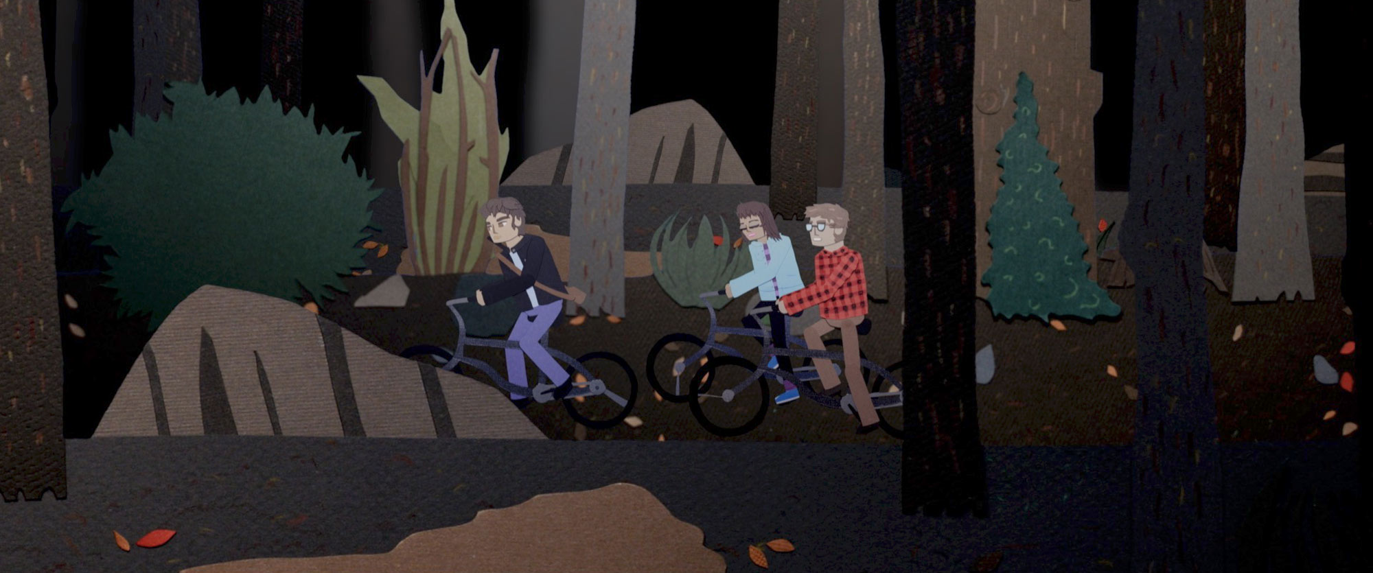 Natalie runs into Kevin and Jeff, people who graduated together but don’t really know each other. Then she heads off to see her favorite band, Teak (“This one’s called ‘Sleeping Trees,’ off our new EP.”). Jeff goes back into the arcade. Kevin?