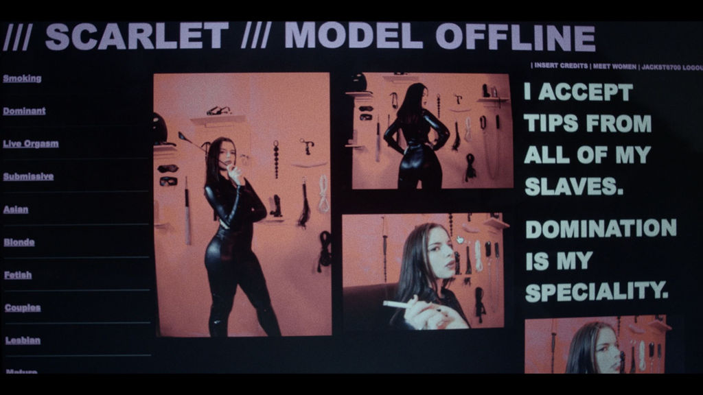 When he wins at blackjack, he starts burning through chat sessions. He’ll take whoever he can get online for a session, but Scarlet (Julia Fox of “Uncut Gems”) is his favorite. She drives him wild with desire, something the film goes to graphic lengths to underscore.