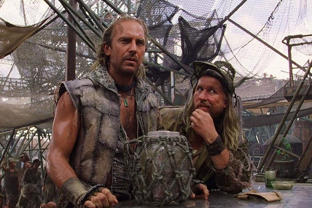 What’s still glorious about the film 26 years after its release are its action beats — as thrilling as anything ever shot at sea. Chases, sea battles, an air attack (Check out the more famous half of Tenacious D playing a pilot.), and Costner, one of the few action heroes then or now able to stand tall amidst the mayhem and register as heroic, one man against the ugly edges of what’s left of mankind.