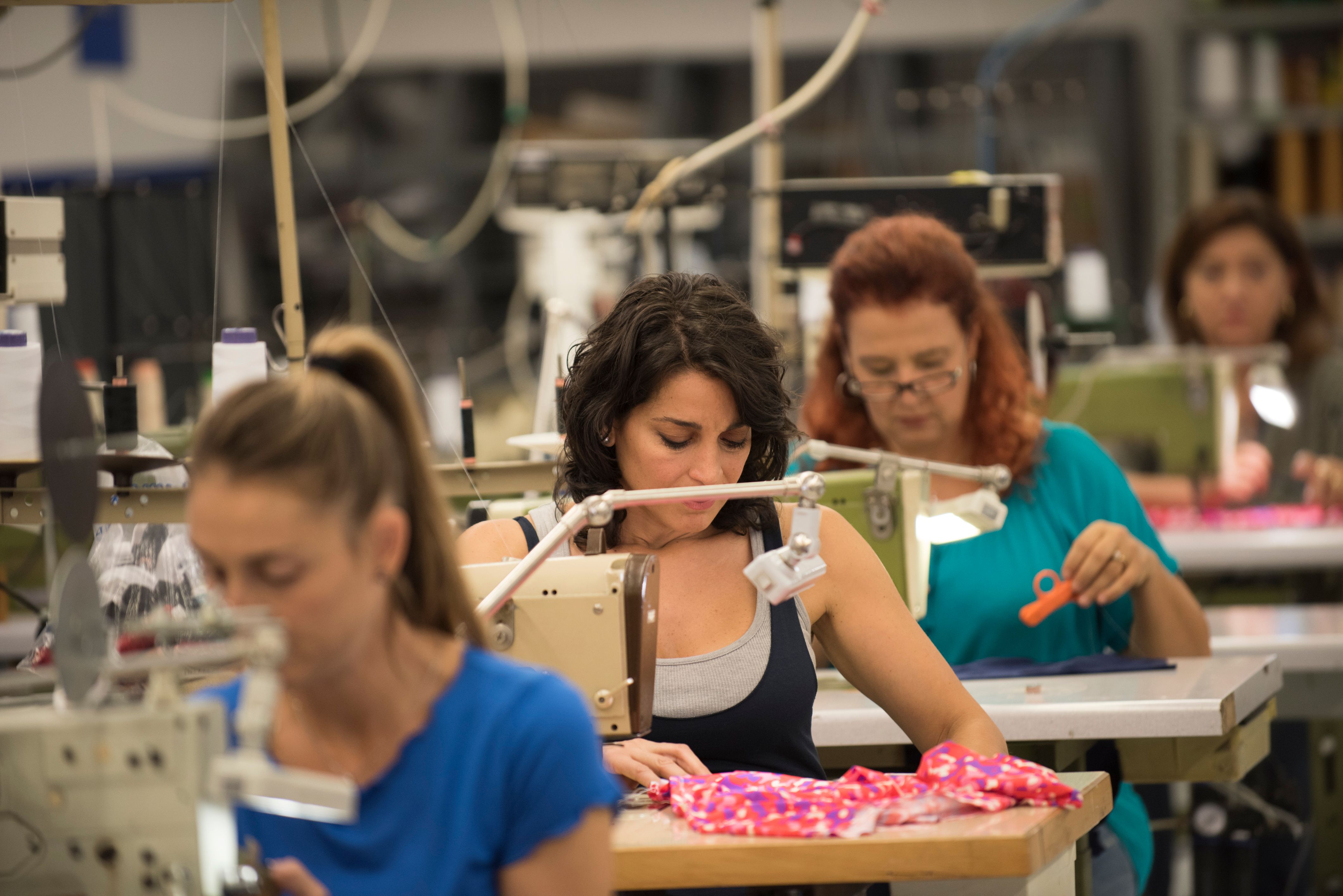 Donatella Finocchiaro (“Youtopia”) is Armida, floor manager of a dozen or so seamstresses at Veronica, a high end “knickers” factory. They bust their butts to get every order filled, to turn designers’ prototype bras into finished goods.