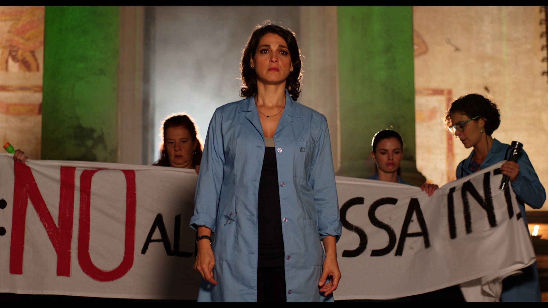 But the “Veronica” in Veronica (Anna Bellato) is sneaking around, plotting to take their machines and their jobs across the Adriatic to Serbia. A protest at a fashion show won’t save them. Picketing the closed factory isn’t enough.