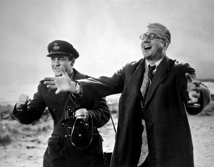 Redgrave also gets to perform the most patrician comeback in all of WWII cinema. The Vickers Aircraft employee is hard-pressed to carry out flight tests of smaller prototype bombs, there being “a war on” and all that. A bureaucrat wants to know how in the heck he’s supposed to convince the higher-ups to peel off a frontline Wellington bomber for Wallis’s use on such tests.