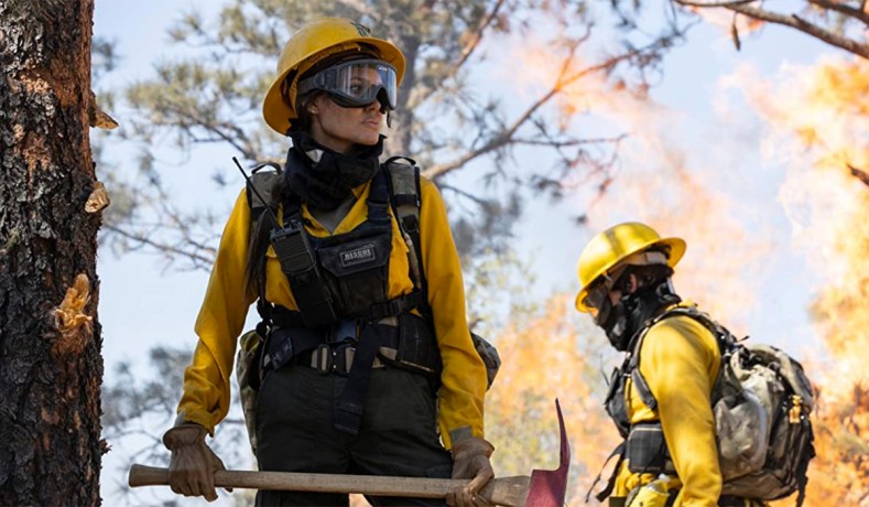 Jolie’s the boss of a macho, swaggering team that parachutes into difficult to reach fires, and she’s just been re-assigned after an accident in the field. No more swapping jokes and stunts and a flask with the boys. Fragile Hannah is assigned to a fire tower to think about what she’s done — obsess about it.