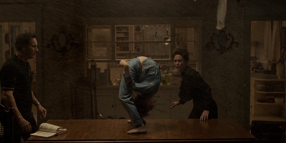 The Warrens convince a skeptical lawyer of the “demonic possession” defense after inviting her over and introducing her “to Annabelle,” the funniest line in the movie, a moment embracing “The Conjuring” universe but doing it off-camera.