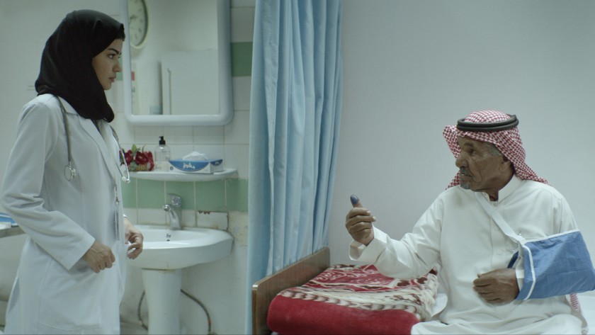 We commute with Maryam, played with a dash of fire by Mila Al Zahrani, as she copes with the endless work-arounds a woman faces in hidebound Islamic fundamentalist Saudi culture. A modern state with the theocratic bureaucracy of a Medieval one, she must comply with all these restrictions on her dress and her movements — a hijab, with the full-face covering of a single-woman’s niqab — changing into sneakers and lab coat at the only clinic in her town.