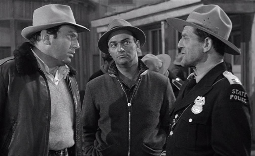 Theodore Bikel’s sheriff character, “up for reelection,” has a hint of a drawl and a pre-Atticus Finch lawyer-turned-lawman notion of justice. He’s not a caricature when he might easily have been one. The script and the humanity Bikel brought to many characters over a very long career, make this guy out of step with his “posse.” He wants these men taken alive, and won’t let others even think about “mob justice.”