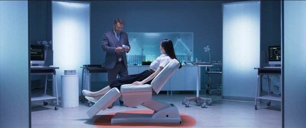 That’s how she becomes a well-paid test subject for this German researcher (Kim Waddoup) who is digging into the chemistry of what makes us sleep, and what might prevent us from staying up forever. This “Qratonin” bears looking into, extracting and maybe synthesizing.