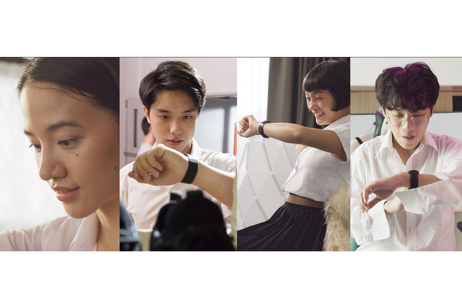 This is how she meets others wearing the big black watch. Win (Kay Lertsittichai) is the always-smiling classmate who’s sweet on her, Cin (Supanaree Sutavijitvong) is a pageboy haircut influencer pixie, and Peach (Krit Jeerapattananuwong) is the socially-awkward gamenerd who all but stalks her.