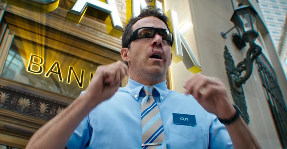 Nametag-wearing Guy (Reynolds) is a digital watch-wearing dork, relentlessly upbeat, chums with the security guard (Lil Rel Howery) who cowers on the floor with him during every robbery at the Free City bank where they both work.