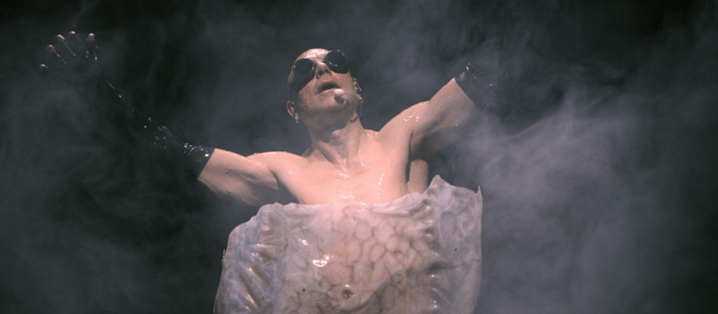 But that’s just his “break through” before his big finish, his “Stop Making Sense” quasi tribute show (Filmed/staged in Mexico, maybe?).