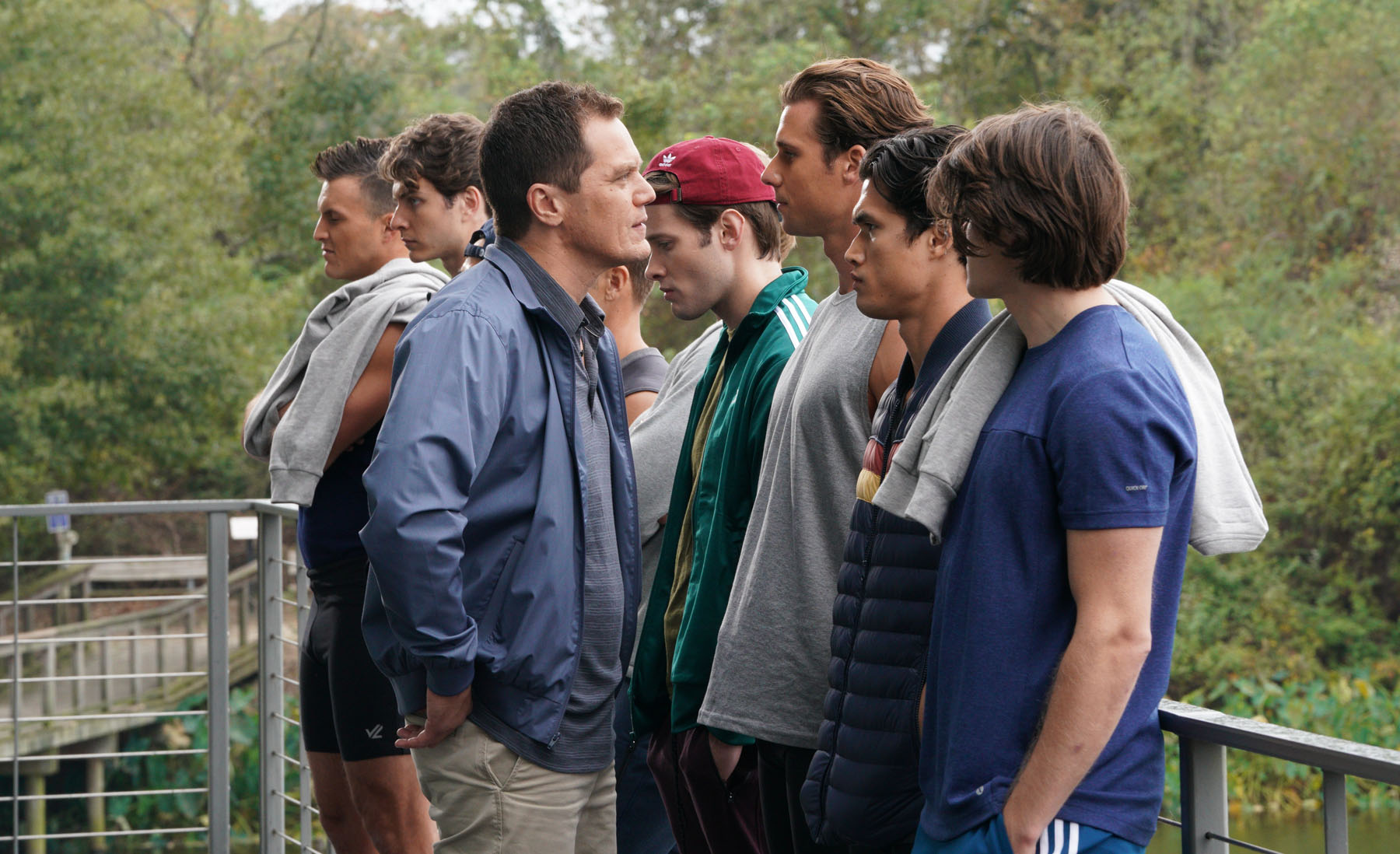 But the almost-saving grace of this pre-fabricated sports drama is that a lot of those concepts are barked by the great Michael Shannon. He plays the new no-nonsense coach of fictional Belleston U. through the races, ups, downs and “power 10s” of its fictional 1999 season.