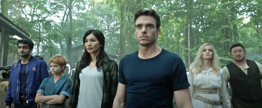 Cast: Gemma Chan, Richard Madden, Salma Hayek, Kumail Nanjiani, Brian Tyree Henry. Lia McHugh, Ma-dong Seok, Lauren Ridloff, Barry Keoghan, Kit Harrington, Harish Patel and Anjelia Jolie