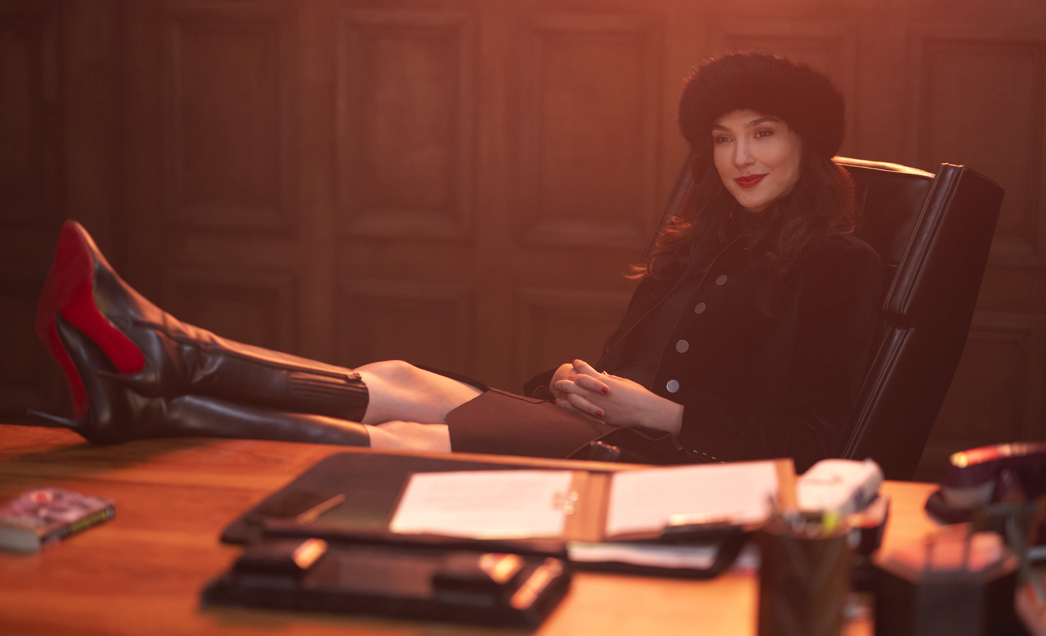 Gadot glams up the joint as the fly in the ointment, and is most impressive not in mimicking her Wonder Woman moves in “trophy room” fights. The twinkle in her eye in a few moments of sadism is some of the best acting we’ve ever seen her do. We hope it’s acting, anyway.