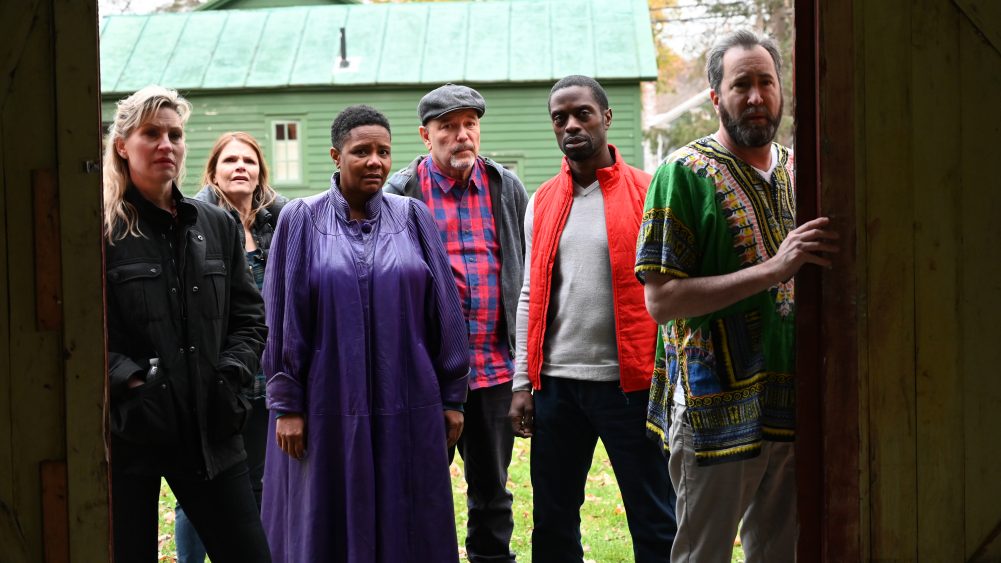 A well-cast old-leftists-go-Red-Stating thriller in the “Get Out/Red State/The Last Supper” vein, it lands its satiric political punches (sort of) but botches the “Cabin in the Woods” basics.