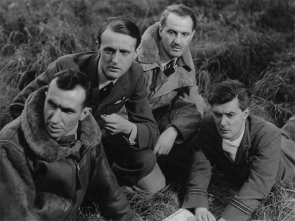 Godfrey Tearle, Eric Portman, Bernard Miles, Hugh Burden, Hugh Williams and Emrys Jones are identified, right in the opening credits, as the various specialists in the aircrew — from pilots and navigator to “observer” and radioman.