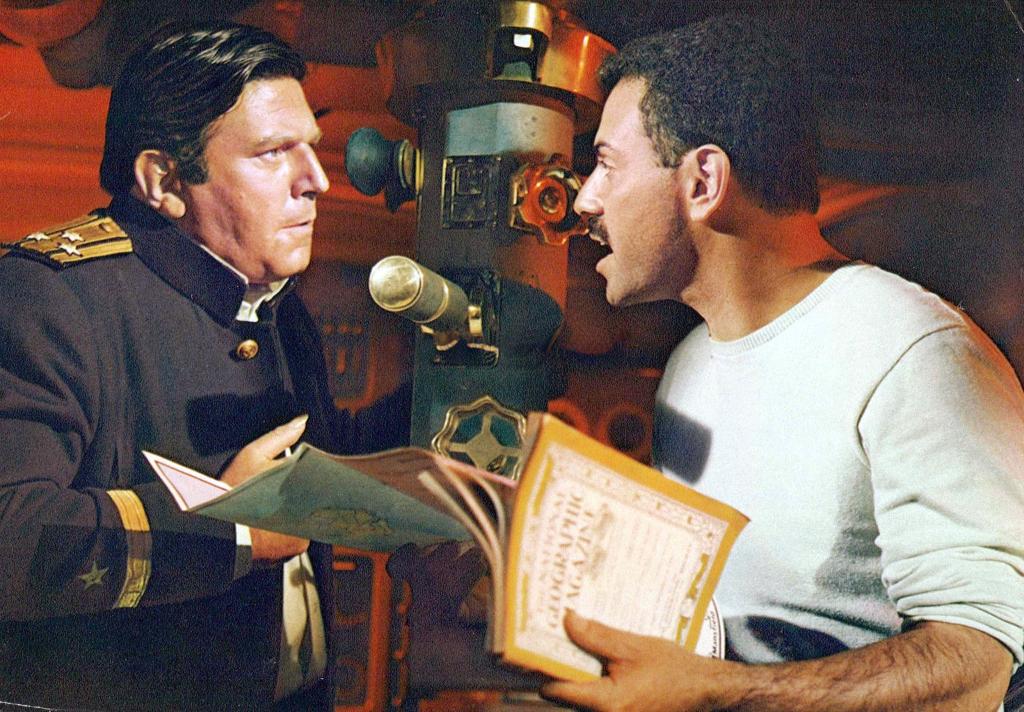 We get comical, irritable shouting matches in Russian between Arkin, who grew up speaking Russian thanks to his immigrant parents, and the great multi-lingual character player Theodore Bikel, who plays the reckless “just wanted to see America” (through the periscope) captain to Arkin’s sub “political officer,” the only English speaker in the crew.