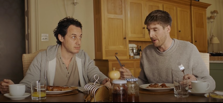And he is really put-out about this tipsy, tactless lout Harry (Dustin Demri-Burns), who stumbles back with the others, who’ve been pubbing, who is anxious to meet the guy the others described as “apparently one of the funniest guys on the planet,” and who proceeds to test, tease, and provoke Pete at every turn.