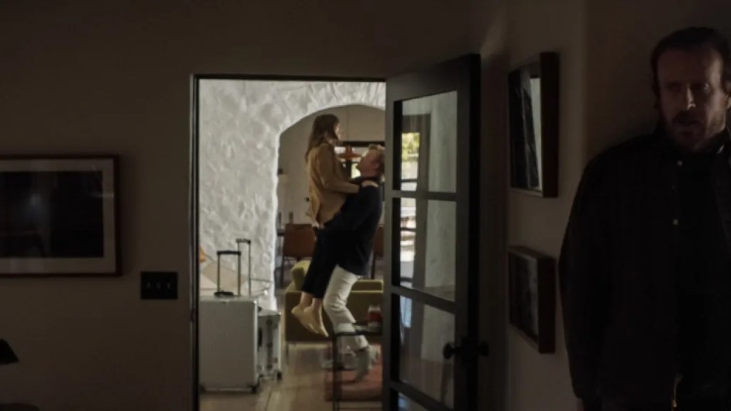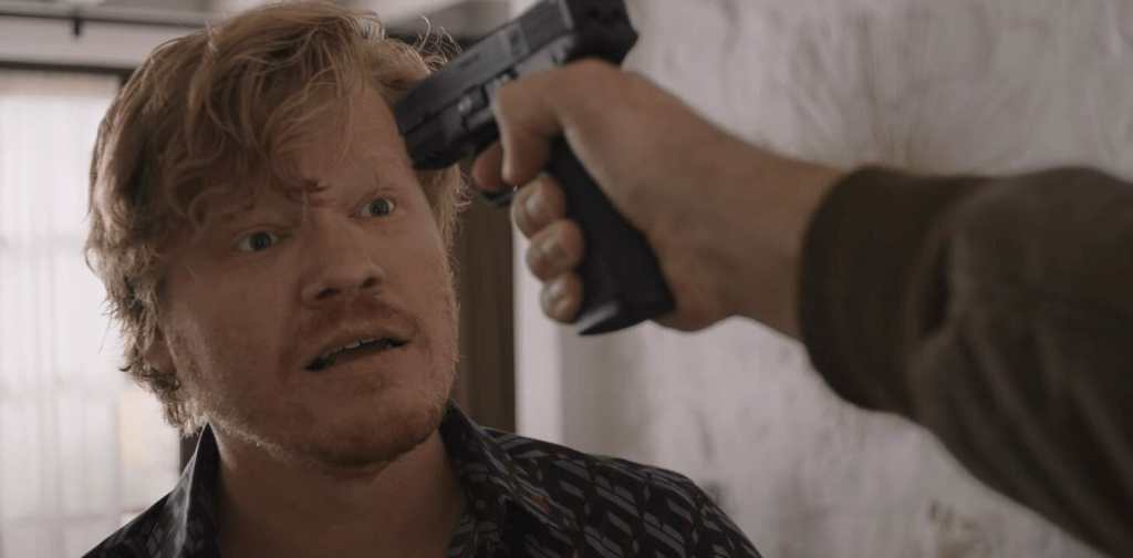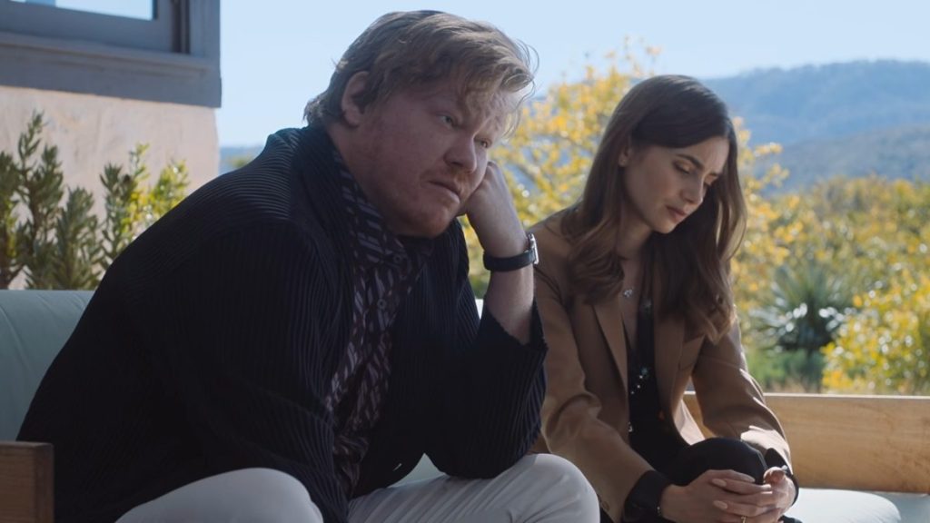 He’s barely stuffed enough into his pockets to make it worth his trouble when the owners arrive. They’re here for a romantic weekend, and we gather that he (Jesse Plemons) is rich and kind of famous for it, and she (Lily Collins) is his apparently adoring trophy wife.