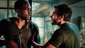 Jake Gyllenhaal turns on the “crazy Jake,” with Yahya Abdul-Mateen II (Manta in “Aquaman”) in the “good half-brother corrupted” sidekick role, Eiza González as this year’s Megan Fox, playing a kidnapped paramedic and Garret Dillahunt as a Josh Duhamel substitute — the cop/authority figure given to bragging that “We’re SIS…we set traps” for bad guys. “That’s how we do it.”