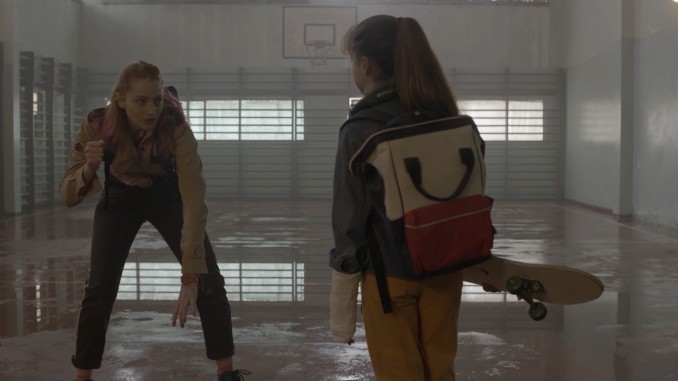 The arresting filming style is established in a killer long-take opening, when we see a kid being dropped off with her irresponsible mother as the camera swoops from close-up to soaring over rooftops and into the apartment of manic, ditzy Iris (Paula Silva), who will bring Tata along with her to work at “the club.”