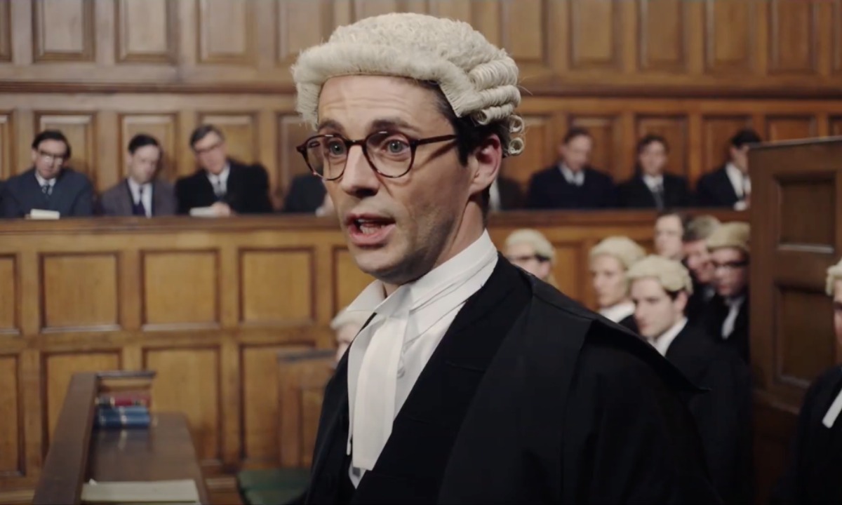 Michell and company mine the story’s mother lode — the trial. The estimable Matthew Goode plays Bunton’s barrister, a wealthy lawyer who happened to be married to the Queen of the British theater, Dame Peggy Ashcroft. Goode lends a misty-eyed idealism to Queen’s Council Jeremy Hutchinson, a man who knows how to feed straight lines to a born performer and natural wit — Kempton Bunton — in the form of questions.