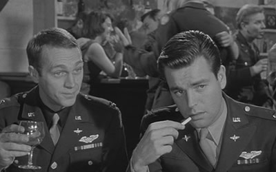 The semi-psychotic Buzz plays god games with his crew, recklessly risking all their necks on a low altitude flyby (a “buzz”) of the base to show his displeasure at a leaflet-dropping mission they’d just completed. A tiny miscalculation and he could kill them all and put his base out of commission, and that barely merits a scolding from the CO.