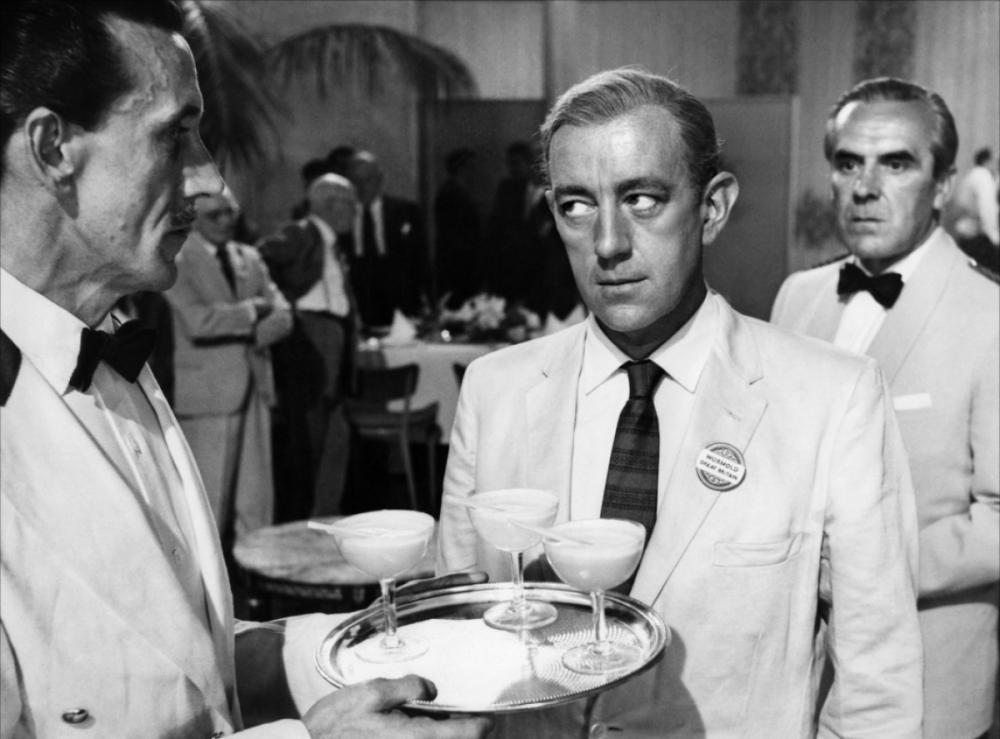 And Guinness, his “Bridge on the River Kwai” turn from comedy to drama well underway, gives us a leading man who is very much the reactor, accepting much at face value, a character who turns darker still as he perhaps starts to suspect that his daquiri (listen to how he pronounces it) drinking buddy might not be a “doctor” after all.