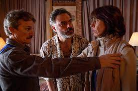 “I vibrate on your frequency,” our over-sexed guru/therapist “Bjorg” (Clement) says as he touches Laura (van Beek) intimately, right in front of her hapless husband Bruno (Damon Herriman). “Together we tremble!”