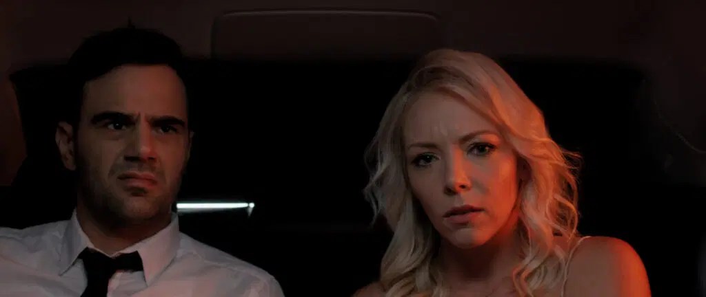 The cutaways to Dawn’s narration are necessary because she’s picked up a seriously dull just-got-engaged couple, and Dawn’s sneering and increasingly menacing exchanges with a school teacher (Sarah French) and her “bro” business exec husband-to-be (Jared Cohn) range from idiotic — they’re insanely slow at realizing the threat — to tedious to downright insipid.