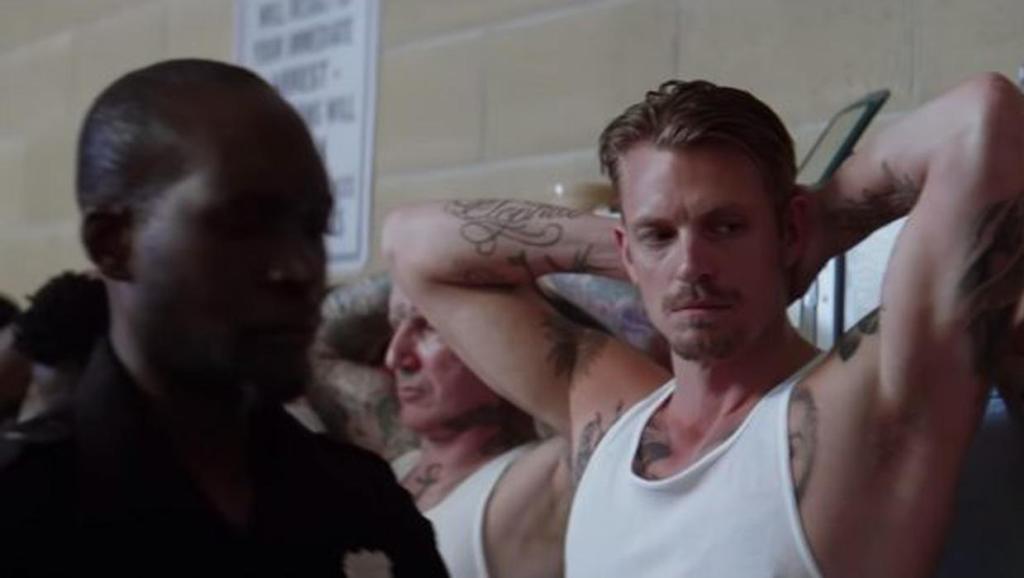 Kinnaman’s terrifically poker-faced. He may be playing a combat vet, a “sniper” (lazy-assed screenwriters), but he’s no superman stuck behind bars with his mental; and physical inferiors. Skinny Kinnaman makes us fear for Koslow’s safety and wonder if he has the wits to wriggle out of this death trap.