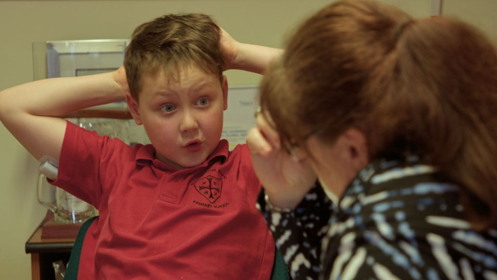 “Young Plato” is a classic “fly on the wall” documentary about this working class Catholic school, following kids into class and onto the playground where, by universal law, little boys play and roughhouse and the roughhousing gets out of hand. Victims and bullies are counseled by either the headmaster or the counselor (Jan-Marie Reel). Tears are shed, comfort is offered and occasionally Kevin McArevey is interrupted by “Unchained Melody,” “Jailhouse Rock” or “If I Can Dream” or whatever ring tone by The King he’s using this week.