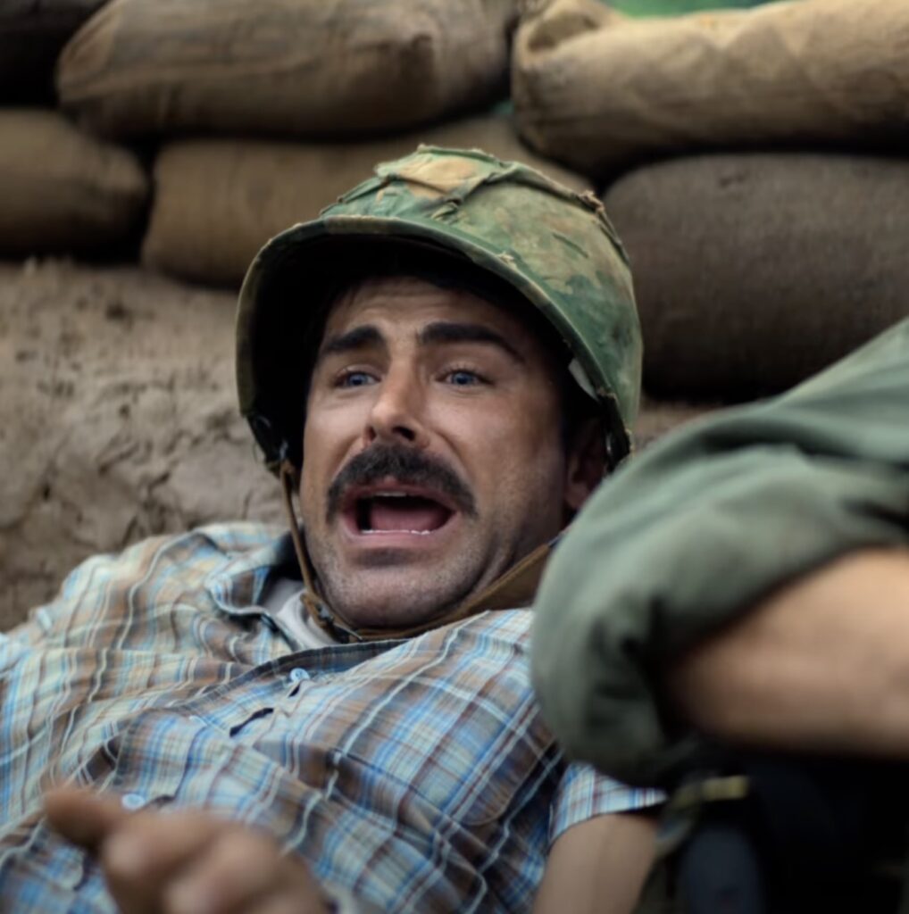 Efron gamely plays-up Chickie’s ebullience at “surprising” this soldier or that one, only to be the last one to figure out that he’s risked his life for nothing, and his presence puts their lives at risk as well.