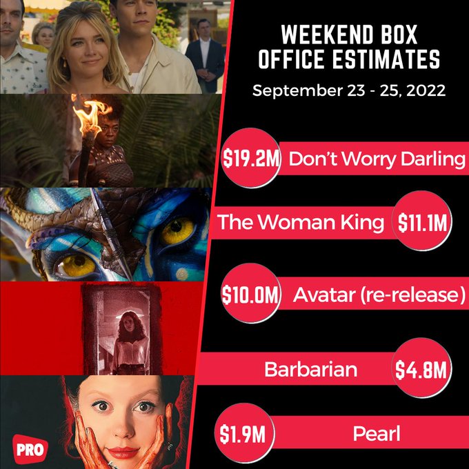 “Don’t Worry Darling,” with all the buzz — much of it bad — had high awareness and a special early EARLY preview of IMAX showings in the larger cities. And it opened not Thursday night but late Thursday afternoon.