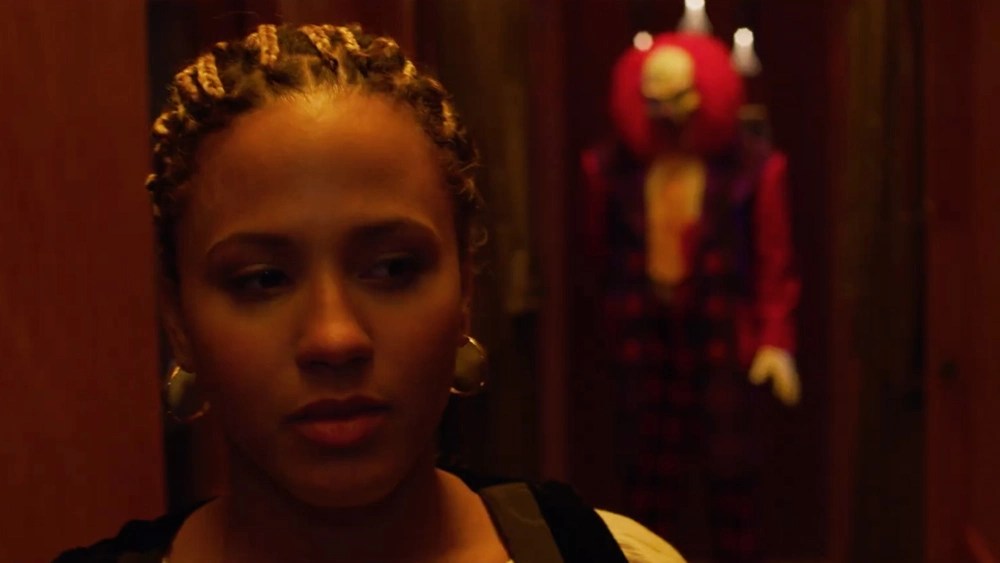 Alana’s a med student mixed up with frat boys (Matias Garrido, Corteon Moore etc) who use her to play a particularly cruel prank. When Halloween rolls around and she and her sorority sisters (Emma Elle Paterson, Romy Meltman) join in on the frat’s party on rails, that opening scene prank comes back to stab people in the ass. Or other vulnerable body parts.