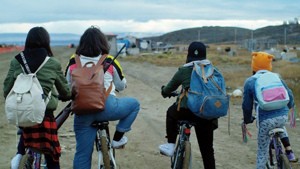 Maika (Tasiana Shirley) is the leader of the pack in this corner of the Cumberland Peninsula. She keeps Jesse and Leena (Alexis Wolfe, Chelsea Prusky) hoping that they have a shot with the “hottest boy in school,” because Maika’s not interested. And she keeps mouthy, hustling braggart Uki (Nalajoss Ellsworth) honest when she tries to con Aya (Frankie Vincent-Wolfe), Maika’s pesky tag-along kid sister out of her savings.