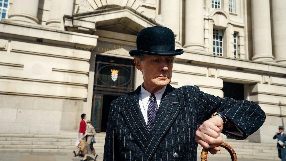 A new man (Alex Sharp) has joined the day’s train ride to County Hall. There’s a pecking order which second-in-command Middleton (Adrian Rawlins) imparts to young Wakeling. Hart and Rusbridger (Oliver Chris and Hubert Burton) know their places. Their boss, Mr. Williamson (Nighy) knows his, too. He always rides in a separate car.