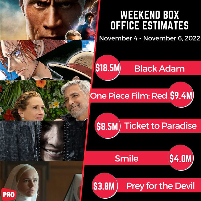 One more big double-digit weekend take from Dwayne Johnson and the DC/Warners team, a whopping $18.5 million more for “Black Adam.” That pushes it over $123 million, and counting.