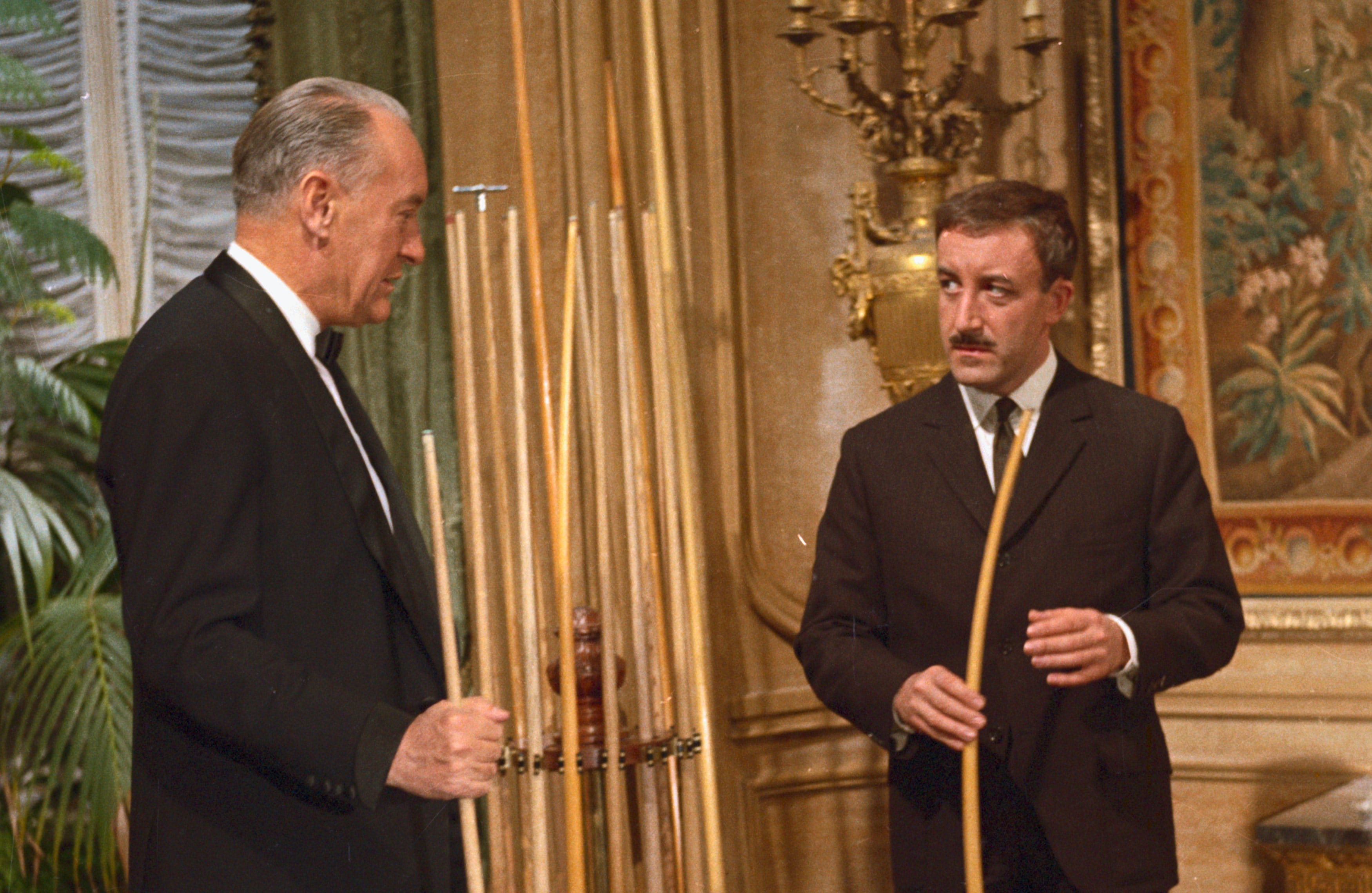 And that’s the way it looks, a nearly-unflappable suspect played by an actor hiding his fury at whatever take they were on as Sellers finds a new way to destroy a billiards room.