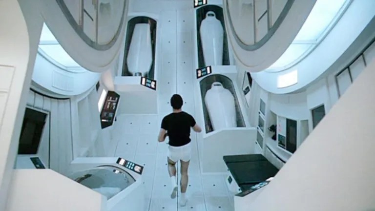 Back in 2018, the fiftieth anniversary of its release, writers revisited “2001” to note how much of “the future” it predicted actually came true. No, we still haven’t colonized the moon. Paying passenger space flight was and is still in its infancy and Pan Am is long dead and gone. But the astronauts on board the spermatozoa-shaped Discovery One spaceship bound for Jupiter can communicate and watch videos from tablets. And every so often, the design flourishes of “2001” — from its shimmering spaceport Hilton airport lounge to the suits the space bureaucrats wear to meetings to discuss what astronaut miners have found in the lunar crater named Tycho — make a comeback.