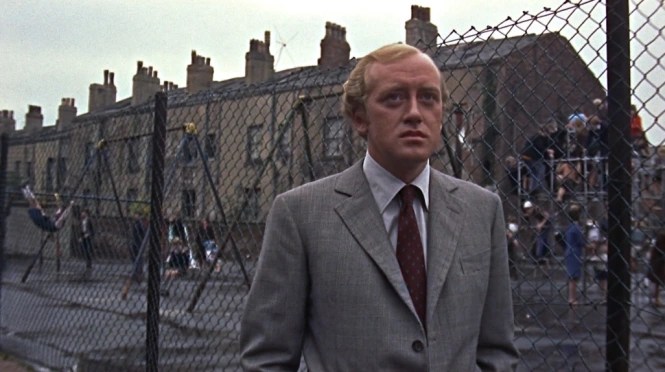 Then Michael gets the phone call that makes him “Mick” again. His father up in Liverpool is on his deathbed. And no amount of reckless Jaguar driving will get him there on time. But he notices bruises under the old man’s ribs. No matter what the go-along-to-get-along Irish doctor (Godfrey Quigley) says, Mick can guess what’s happened.