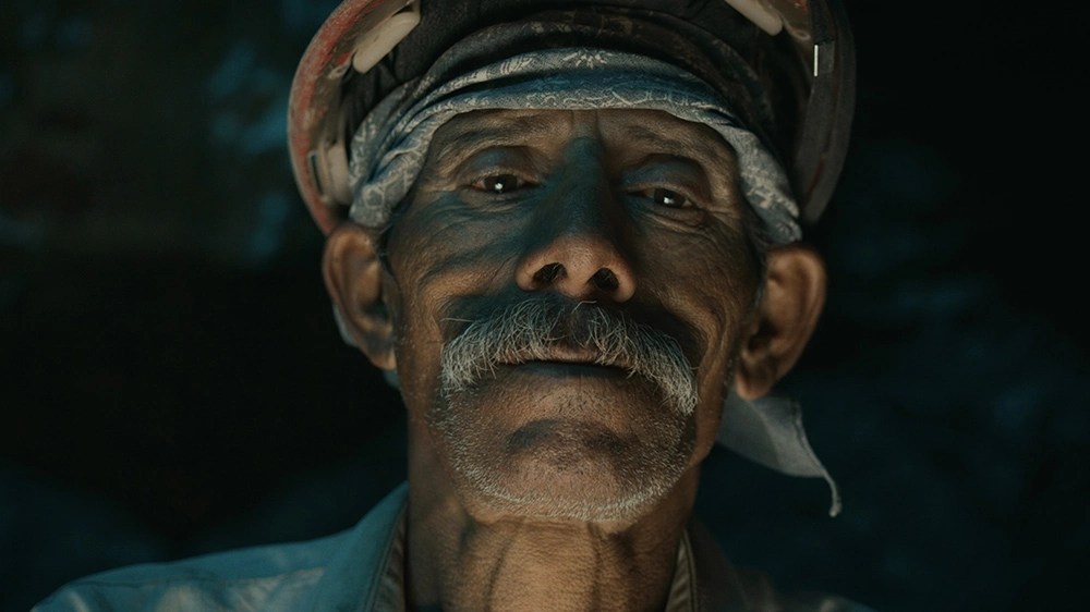 He graces us with two simple category labels: “White” for “Mixtec: The South” to denote the salt pans we see men laboriously working, drying salt in and bagging, and then loading onto donkeys, and “Black” for “The North: Sierra de Catorce” where timeworn men crawl into a (Silver? Perhaps?) mine, chiseling and blowing up ore, playing crap games by headlamp light on their breaks.