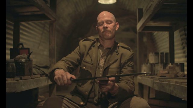 The new Yank medic (Eddie Ramos) and Yank HQ functionary (Sean Cullen) will come along, crawling through the darkness and silencing a manic Hun who seems seriously freaked-out about something he’s experienced as they do.