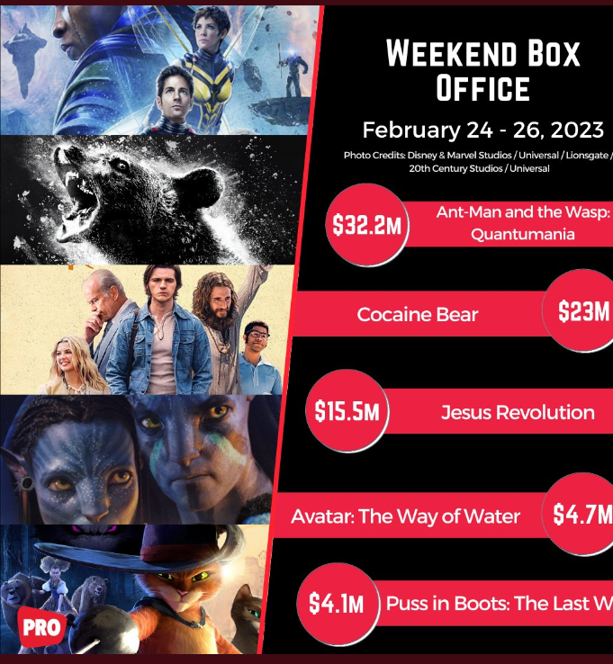 The “Jesus Revolution” is bringing the faithful out, a decent, uplifting and positive-messaging faith-based film with none of the politics that poison so much cinema in that genre. Early projections saw this no-big-stars historical “moment” movie managing maybe $10 million. Nope. $15 million+, depending on how Saturday and Sunday pan out.