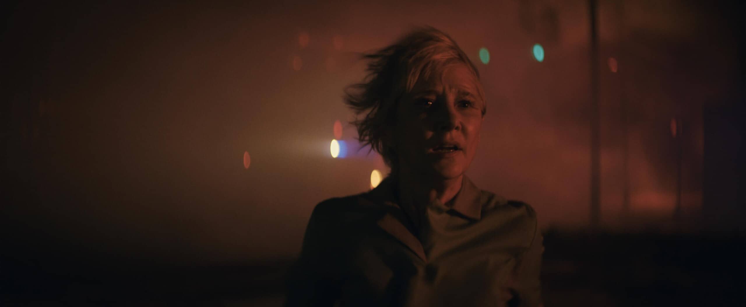 Close-ups of hands grabbing radios or dial cell phones, a “Brody Storm Labs” truck peels out, a child walks up to a Spielbergian window to glimpse an awesome “Close Encounter” in the making and a tragedy, mostly off-camera, is heard on shortwave radio and seen in the unanswered cell phone in an overturned truck.